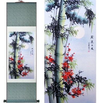 Le Kakemono Bambous et Cerisiers Printaniers Fleurs Feng Shui, tableau zen, symbole de croissance, de renaissance et de prospérité.