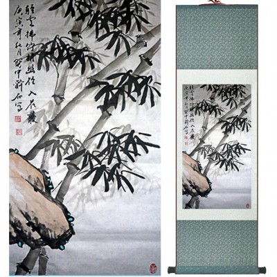 Le Kakemono Bambous sur la Falaise Feng Shui, tableau zen, symbole de richesse, de santé et de longévité.