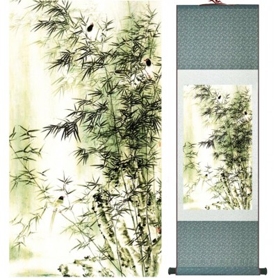 Le Kakemono Buisson de Bambous vert Feng Shui, tableau zen, symbole de richesse, de santé et de longévité.