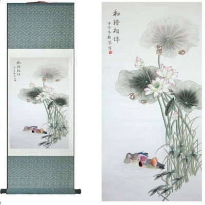 Le kakemono canards mandarins est une impression sur soie, il est réalisé de façon artisanale, entièrement à la main.