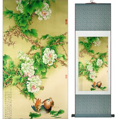 Le Kakemono Canards Mandarins et Pivoines Feng Shui, symbole de relations amoureuses fortes et durables, de fidélité dans le couple.