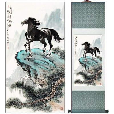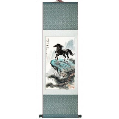 Le Kakemono Cheval dans la montagne Feng Shui, tableau zen, emblème de puissance, de persévérance et de courage.