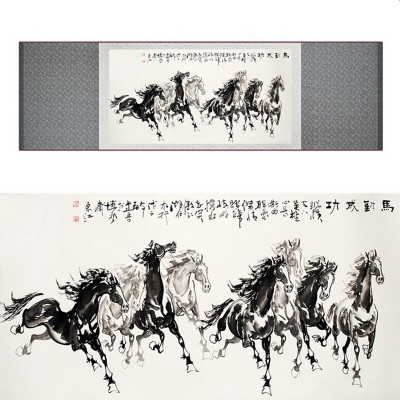 Le Kakemono Chevaux Impérieux Feng Shui, tableau zen, emblème de puissance, de persévérance et de courage.