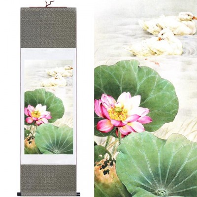 Le kakemono canards mandarins est en soie, il est réalisé de façon artisanale, entièrement à la main.