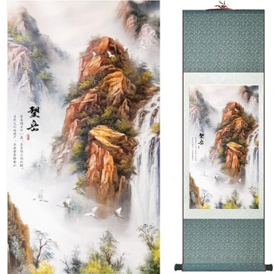 Le Kakemono Montagne aux Grues dans les Nuages Feng Shui, tableau zen, puissant symbole de stabilité et de soutien dans le domaine professionnel.