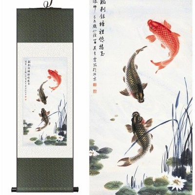 Le kakemono poissons carpes est en soie, il est réalisé de façon artisanale, entièrement à la main.
