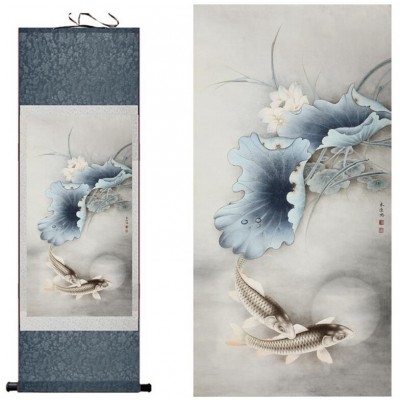 Le Kakemono Poissons Carpes Nénuphars bleus Feng Shui, tableau zen, symbole de persévérance, de force mais également de richesse et d’abondance.