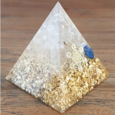 Cette pyramide est à prédominance de cristal de roche avec une pierre de lapis lazuli.