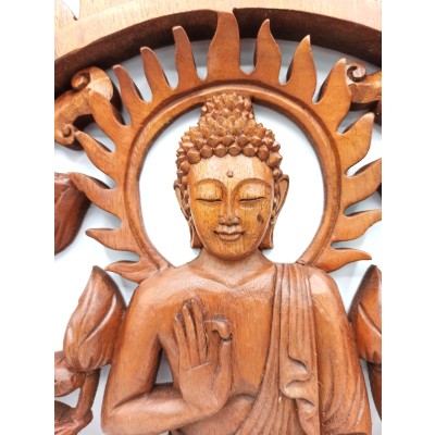 Le panneau décoratif Bouddha mesure 40cm de diamètre.