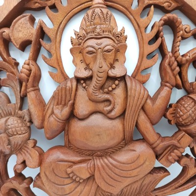 Le Panneau Décoratif Sculpté Ganesh 40cm Feng Shui, symbole de bienfaisance, de savoir, de sagesse et de grande protection apportant équilibre et énergie positive à votre espace.