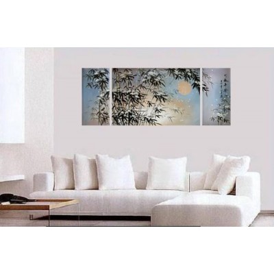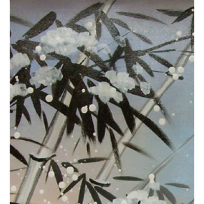 Peinture à l’huile Bambou, tableau zen, symbole de richesse, de santé et de longévité.