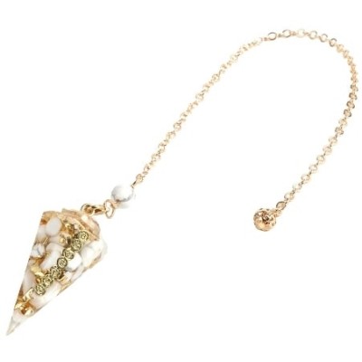 Le Pendule Orgonite des 7 Chakras en Howlite, réputé pour ses vertues protectrices, véritable bouclier contre les ondes et dépollueur d’énergie.