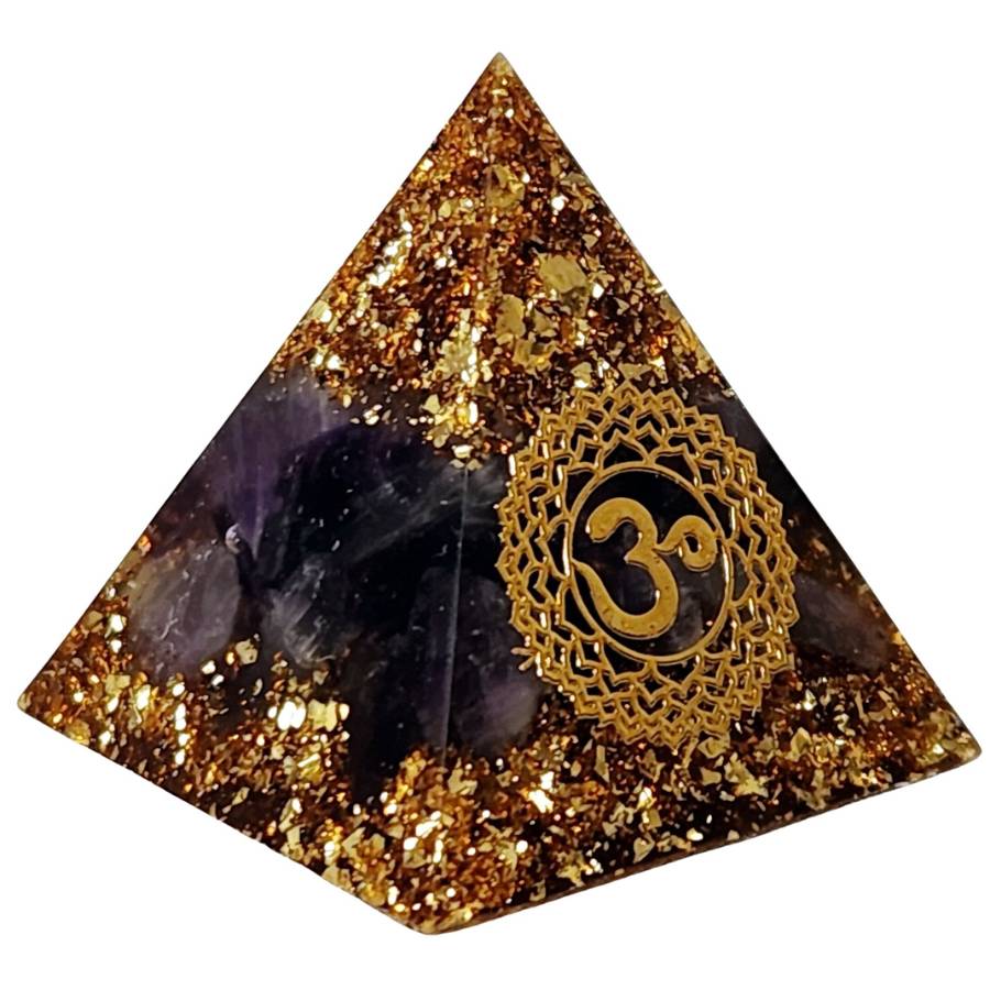 Cette petite pyramide orgonite Sahasrara chakra aide à retrouver calme intérieur, lâcher-prise et harmonie spirituelle.
