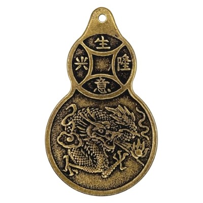 Cette pièce amulette est présentée sous la forme d’un wu lou, qui est l’un des remèdes Feng shui les plus populaires.