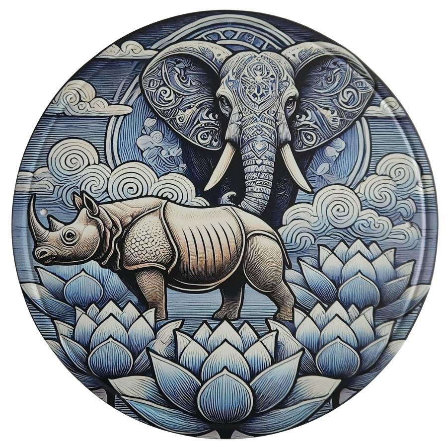 • Motif : rhinocéros et éléphant bleus protecteurs