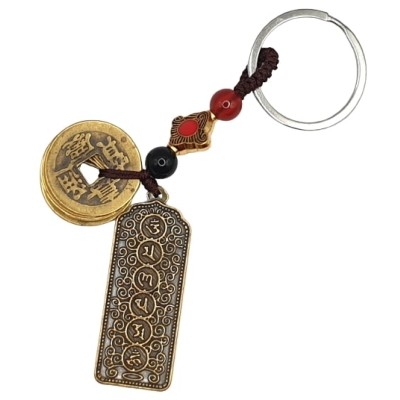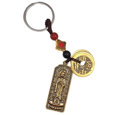 Le Porte Clés 5 Pièces de l’Empereur et Bouddha debout Feng Shui, puissant symbole de protection, de joie et d’équilibre spirituel.
