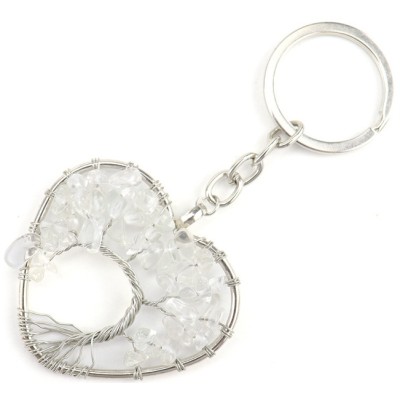 Porte Clés Arbre de Vie Coeur en Cristal de roche