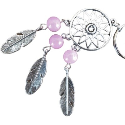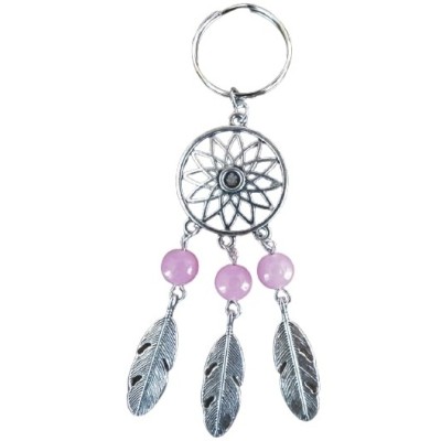 Le Porte Clés Attrape Rêves 3 Perles roses Feng Shui, symbole traditionnel de protection, idéal pour lutter contre les mauvaises nuits.