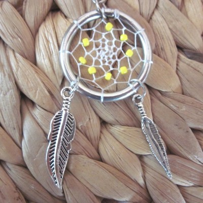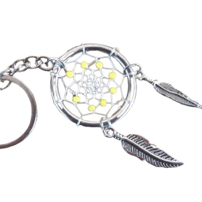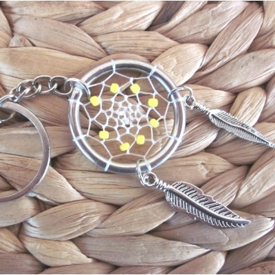 Le Porte Clés Attrape Rêves jaune Feng Shui, symbole traditionnel de protection, idéal pour lutter contre les mauvaises nuits.