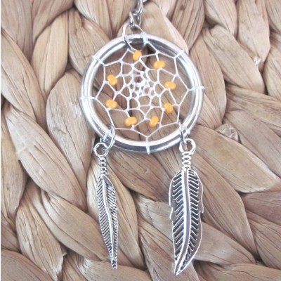 Le Porte Clés Attrape Rêves orange Feng Shui, symbole traditionnel de protection, idéal pour lutter contre les mauvaises nuits.