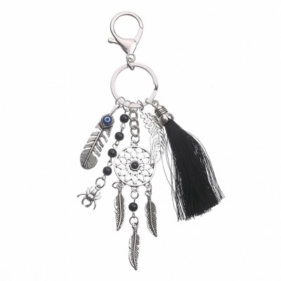 Le Porte Clés Attrape Rêves Plume Talisman noir Feng Shui, symbole traditionnel de protection, idéal pour lutter contre les mauvaises nuits.