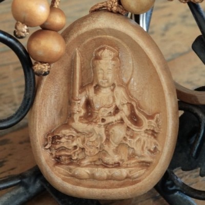 Manjushri, également connu sous le non de Wenshu Pusa, est un grand Bodhisattva réputé pour sa sagesse, son intelligence et sa vivacité d’esprit.