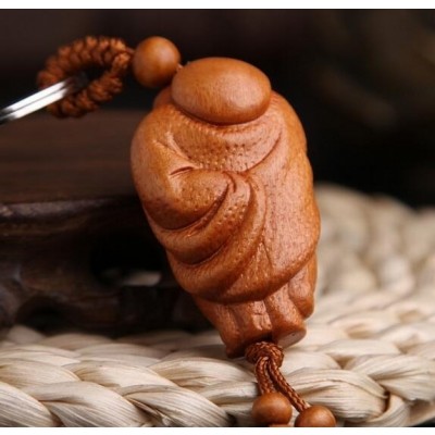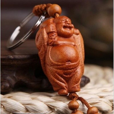 Ce porte-clés Bouddha sculpté en bois est bien plus qu’un simple accessoire : c’est un véritable talisman spirituel.