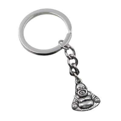 Le Porte Clés Bouddha Riant argenté Feng Shui, symbole de protection, de joie et d’équilibre spirituel.