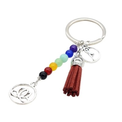 Le Porte Clés des 7 Chakras Lotus rouge Feng Shui, aide au bien être et au bon équilibre des énergies du corps humain.