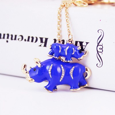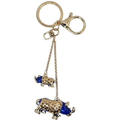 Le Porte Clés Famille Rhinocéros bleus Feng Shui, symbole de protection, de puissance et de grande stabilité professionnelle.
