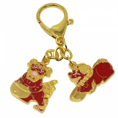 Le Porte Clés Fu Dogs rouges Feng Shui, créatures célestes, puissants gardiens et protecteurs des lieux, symbole de respect et de fortune.