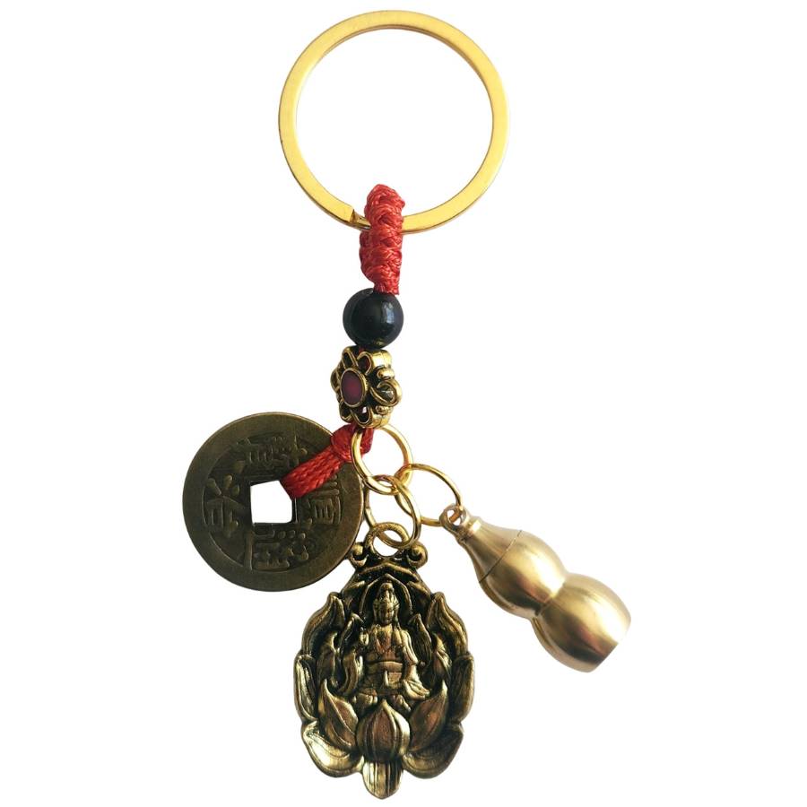 Le Porte-clés Guan Yin et Wu Lou Feng Shui associe des symboles puissants de protection, de compassion et d’harmonie intérieure.