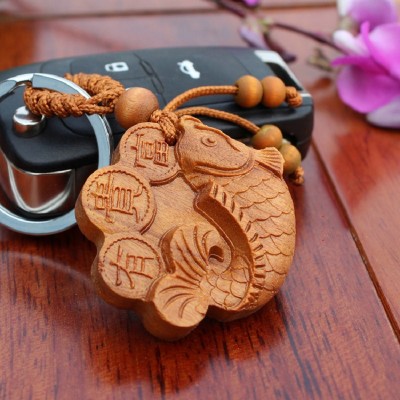 Le Porte Clés Poissons Carpes et Calligraphie Feng Shui, très grand symbole de persévérance, de force et de virilité.