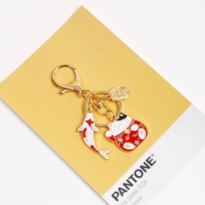 Le Porte Clés Poisson Carpe Maneki Neko rouge Feng Shui, très grand symbole de persévérance, de force et de virilité.
