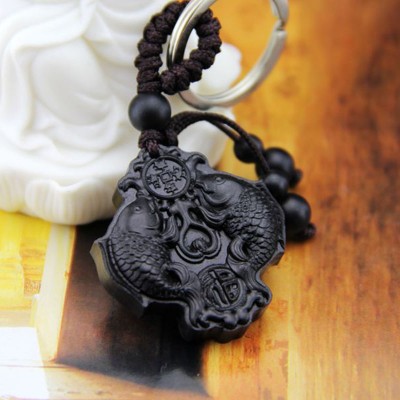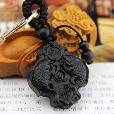 Le Porte Clés Poissons Carpes Koi en Ebène Feng Shui, très grand symbole de persévérance, de force et de virilité.