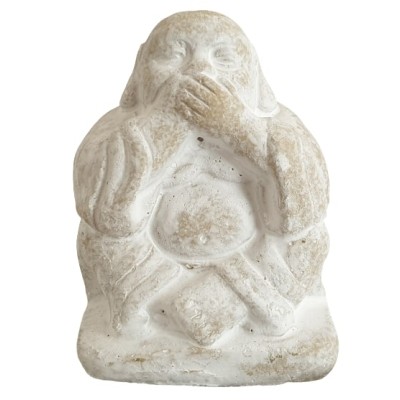 Nous avons ici un des 3 Bouddhas de la Sagesse, celui se recouvrant la bouche. Sa philosophie est la suivante, ne rien dire de mal. Il suit ainsi le précepte suivant, “je ne dis pas ce qu’il ne faut pas dire”, ce qui signifie qu’a partir de là aucune médisance ne peut m’atteindre.