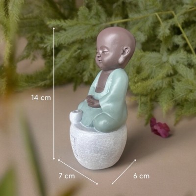 La statuette bouddha mesure 14cm de hauteur, 7cm de longueur et 6cm de largeur.