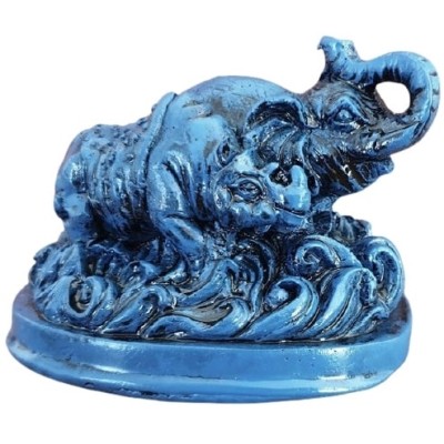 La statue éléphant et rhinocéros bleu Feng Shui mesure 9,5cm de largeur, 5,5cm de profondeur et 6,5cm de hauteur.