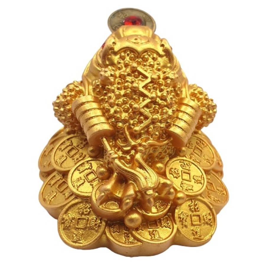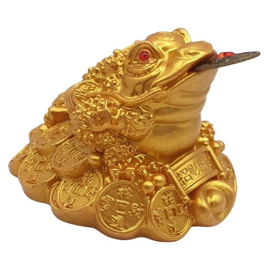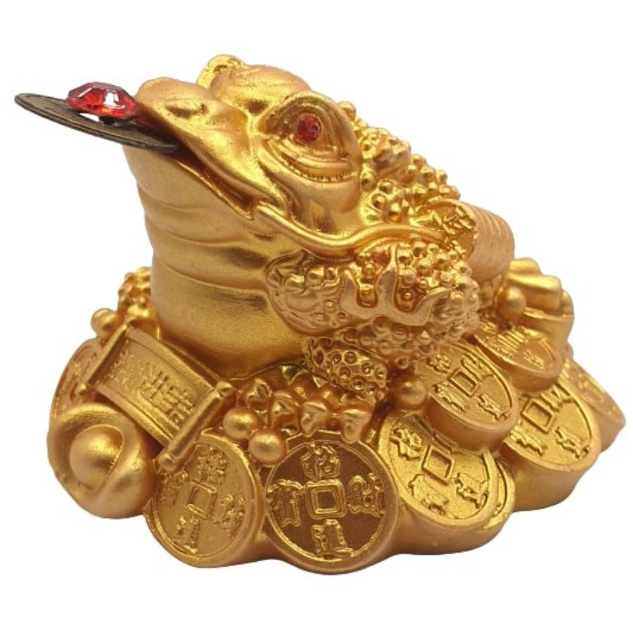 La statue grenouille sur lit de pièces dorée, aussi appelée grenouille de la richesse ou crapaud de prospérité, est l’un des symboles Feng Shui les plus associés à l’abondance matérielle.