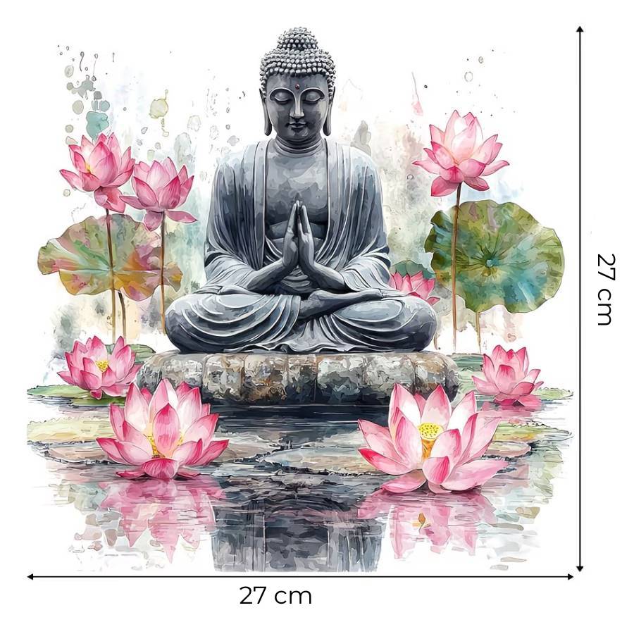 Le Sticker Bouddha Lotus Sérénité – petit format apaisant invite immédiatement au calme et à la détente.