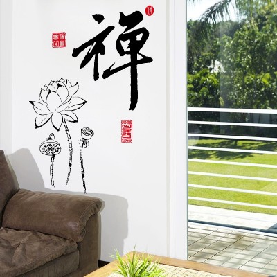 Le Sticker Calligraphie et Fleurs de Lotus Feng Shui, véritable bouquet de fraicheur et d’originalité dans votre décoration d’intérieur.