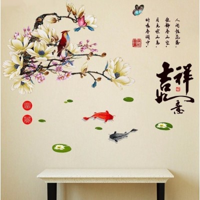 Le Sticker Calligraphie Poissons carpes aux Magnolias Feng Shui, véritable bouquet de fraicheur et d’originalité dans votre décoration d’intérieur.