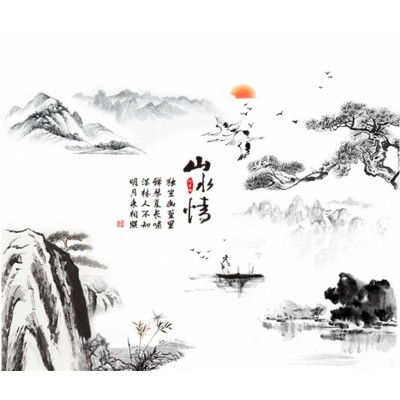 Le Sticker Lever de Soleil sur Paysage d’Asie Feng Shui, véritable bouquet de fraicheur et d’originalité dans votre décoration d’intérieur.
