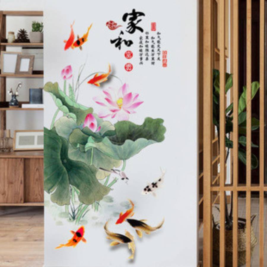 Sticker Lotus et Koi Bonheur du Foyer Feng Shui pour harmoniser les énergies et favoriser le bien-être familial.