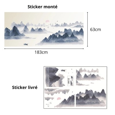Le sticker Feng Shui mesure 63cm de hauteur et 183cm de largeur monté.
