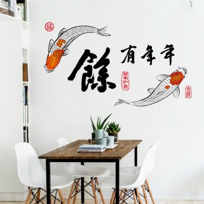 Le Sticker Poissons Carpes orange et Calligraphie Feng Shui, véritable bouquet de fraicheur et d’originalité dans votre décoration d’intérieur.