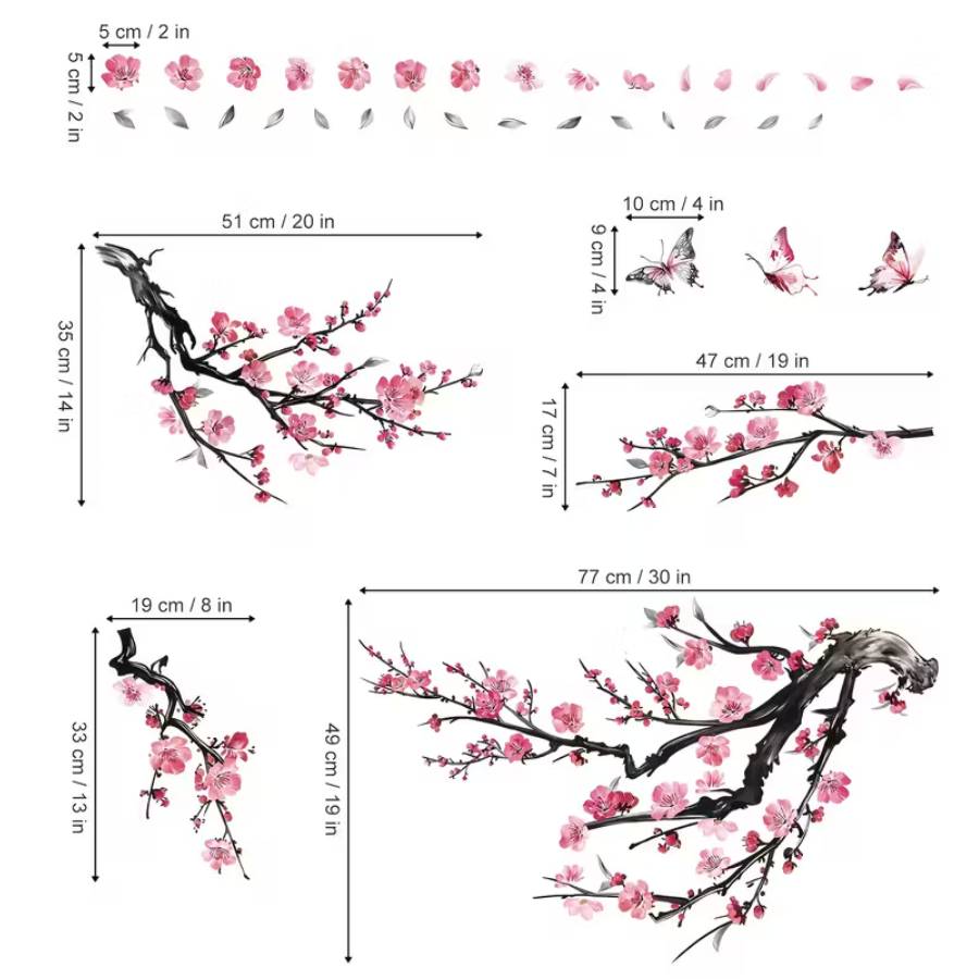 Avec ses branches fines, ses fleurs délicates et ses éléments dispersés, ce sticker donne une véritable sensation de mouvement.