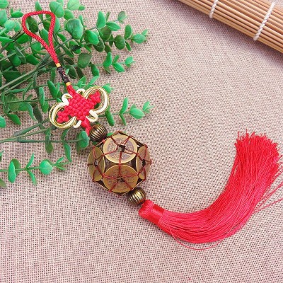 La suspension combine les énergies positives des pièces de monnaie chinoises, qui attirent la bonne fortune, celle du nœud mystique sans fin, qui symbolise la continuité et l’harmonie.