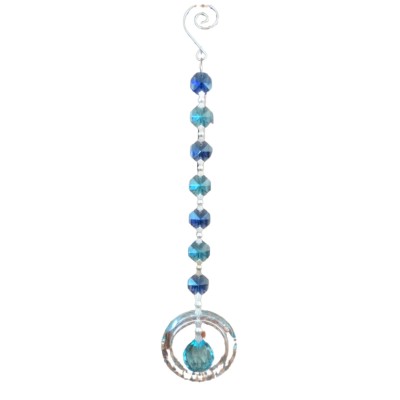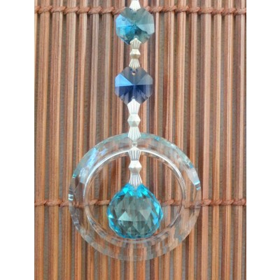 La suspension Cristal Solaire bleu 20mm Spirale et Cercle Feng Shui, excellent purificateur et activateur d’énergie positive.
