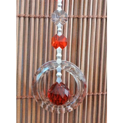 La Suspension Cristal Solaire rouge 20mm Spirale et Cercle Feng Shui, excellent purificateur et activateur d’énergie positive.